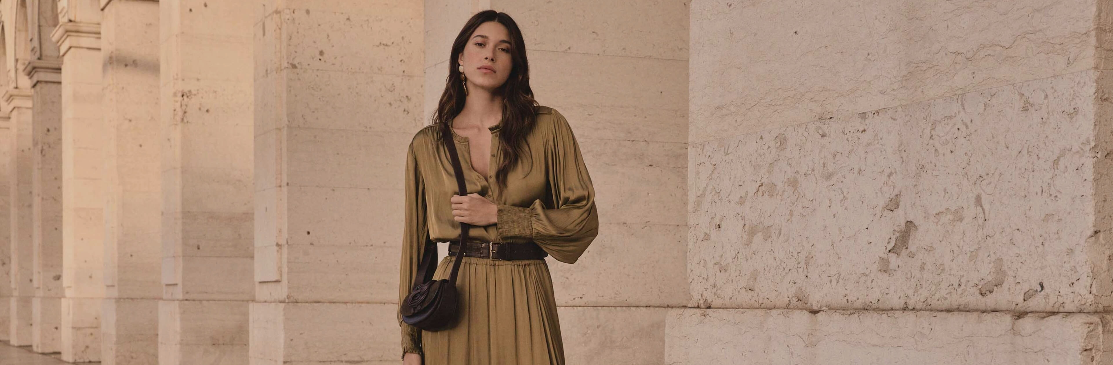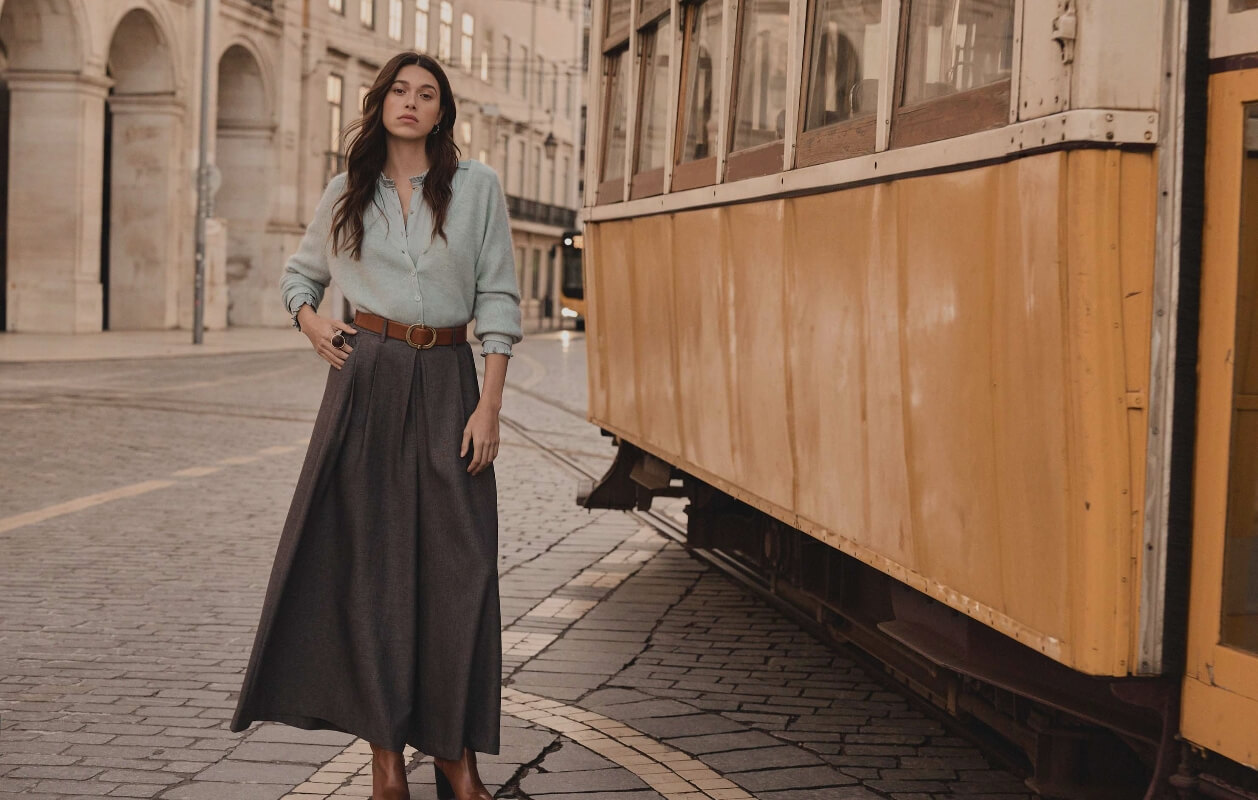 Con una falda larga de corte evasé, como nuestras icónicas faldas plisadas o de denim, elige una parte de arriba más ajustada al cuerpo, como un tejido de punto muy fino, una camiseta o un jersey de cuello alto elegante para jugar con los volúmenes y conseguir una silueta definida. Con una falda larga o midi más recta, en cambio, apuesta por más volumen en la parte superior del cuerpo, como una camisa oversize, por ejemplo. Con nuestras faldas muy fluidas, te recomendamos llevar un suéter de punto, amplio o grueso, para lograr un contraste de texturas exitoso.